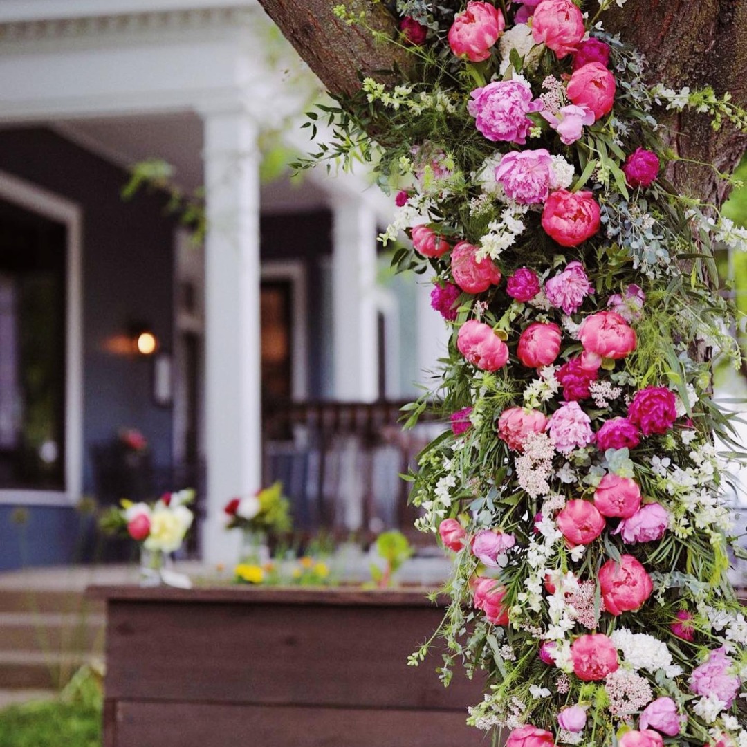I entered the floral industry in 2019. After spending many years in search of a way to use my design background while supporting mental health, a cause near and dear to my heart. After learning of all the ways flowers can affect us physically and emotionally. Flowers were the answer! When in bloom, I source from local farms and always use environmentally friendly materials. When possible, I donate flowers within the community in support of mental health locally. I designed the very first festival backdrop and have been designing for the festival ever since. I am excited for yet another year at the Indiana Peony Festival.